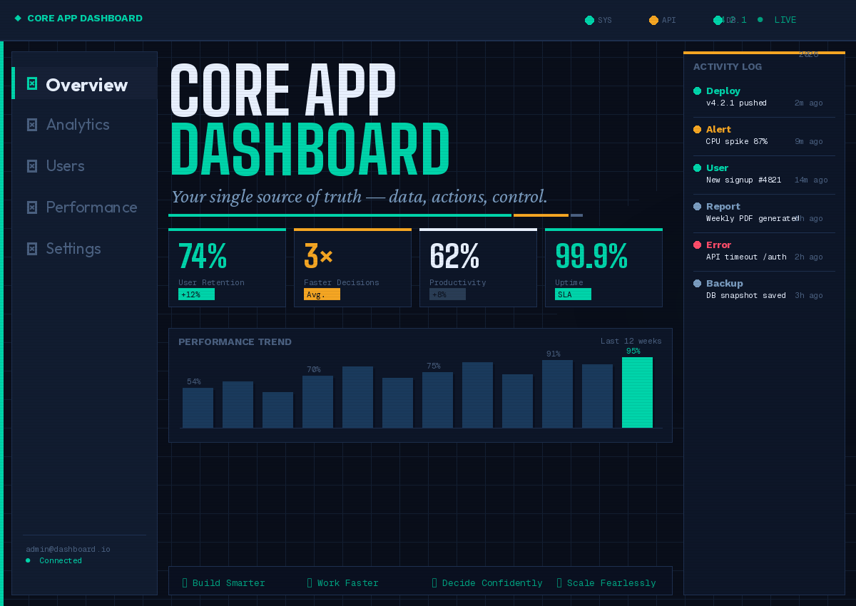 In today’s fast-paced digital landscape, teams and individuals juggle dozens of tools, metrics, and workflows simultaneously. A well-designed core app dashboard acts as the central nervous system of any application — giving users instant access to the data, tasks, and controls that matter most. Without it, productivity suffers and confusion reigns.