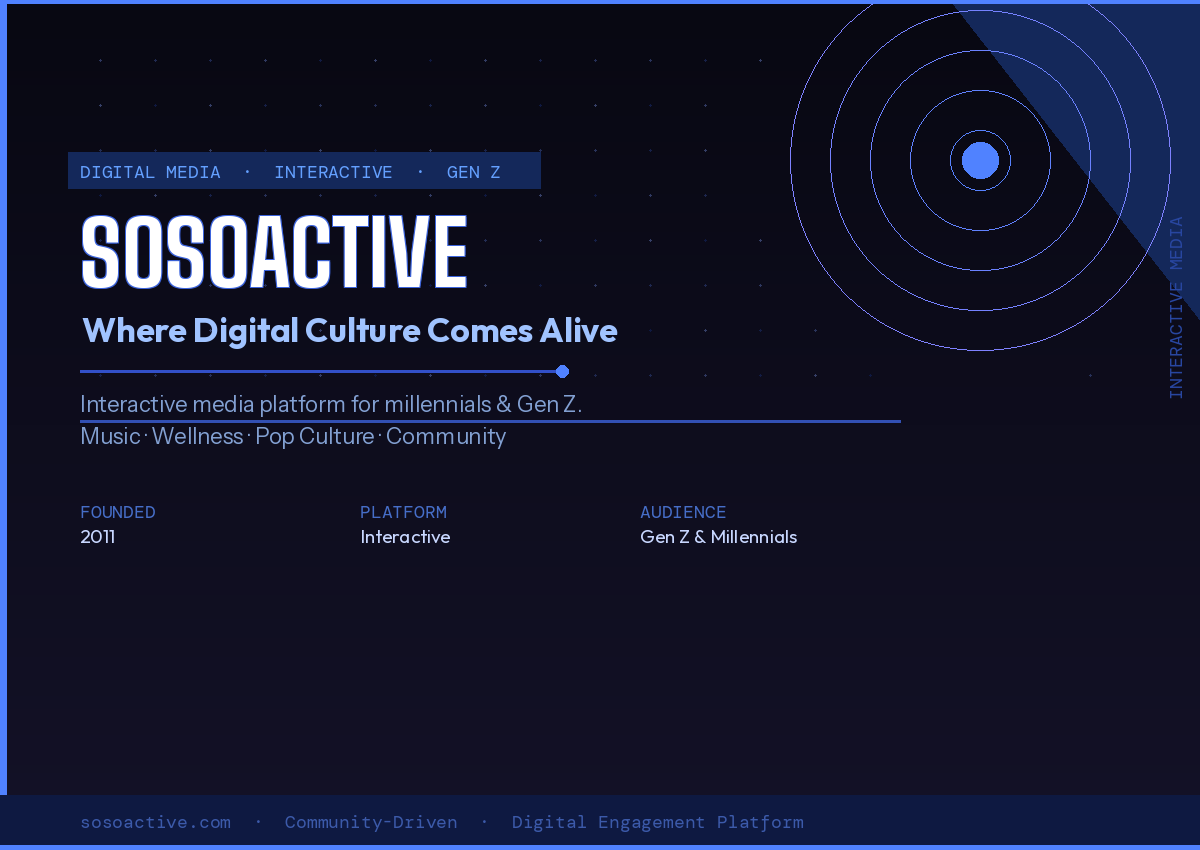 Sosoactive is an interactive digital media company publishing content across entertainment, culture, health, music, and lifestyle categories, designed to engage readers as active community participants rather than passive consumers.